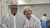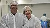 GODT SAMARBEID: – Vi skal ha trygg mat ut til kundene, ellers kan fallhøyden være stor, sier Heidi Lund i Åkeberg-Skoglunn. Her sammen med Stein Nikolaisen i Aquatic Consept Group, som har bistått bedriften med kjemiprodukter, samt råd og veiledning omkring næringsmiddelrenhold. (Foto: Synnøve Prytz Berset)